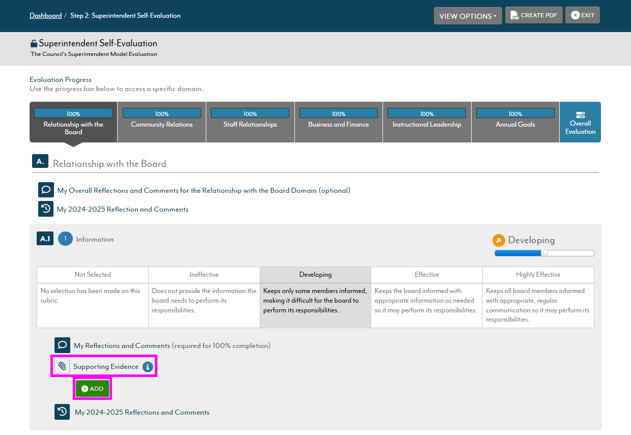 - Open your evaluation and navigate to the competency that you would like to tie your evidence to