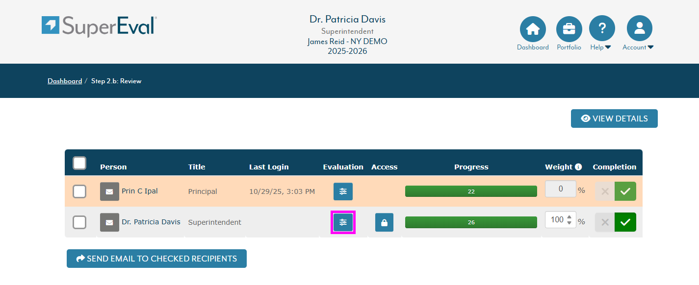 Click into Step 2.b: Principal Reviewer's Evaluation. - Click into your evaluation of the employee.