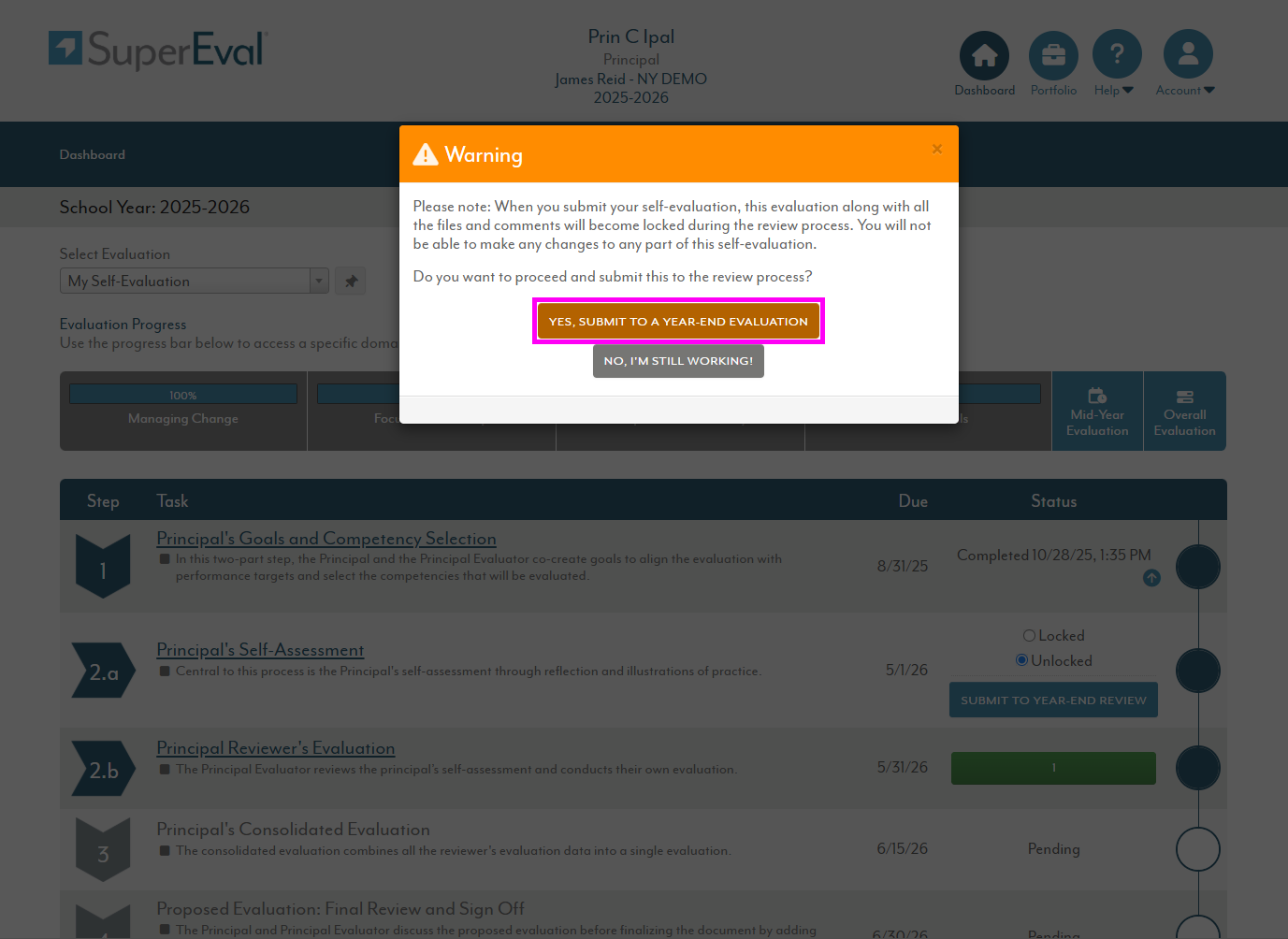- Confirm this by selecting Yes, Submit To A Year-End Evaluation in the pop up window.