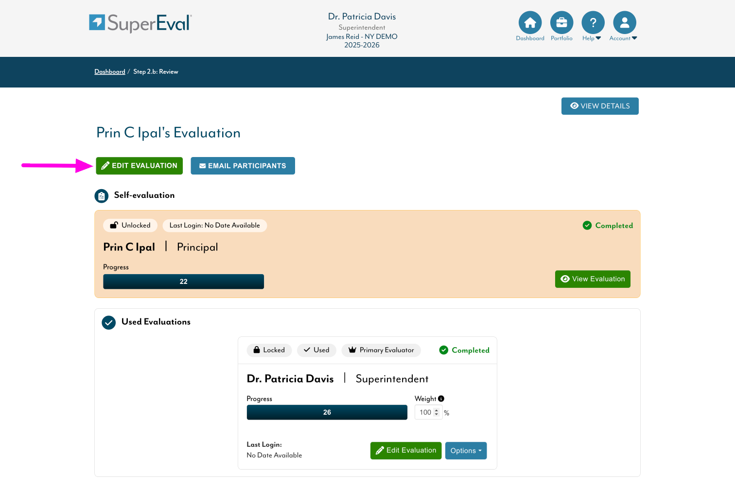 Navigate to your evaluatee's evaluation using the dropdown menu on your Dashboard.