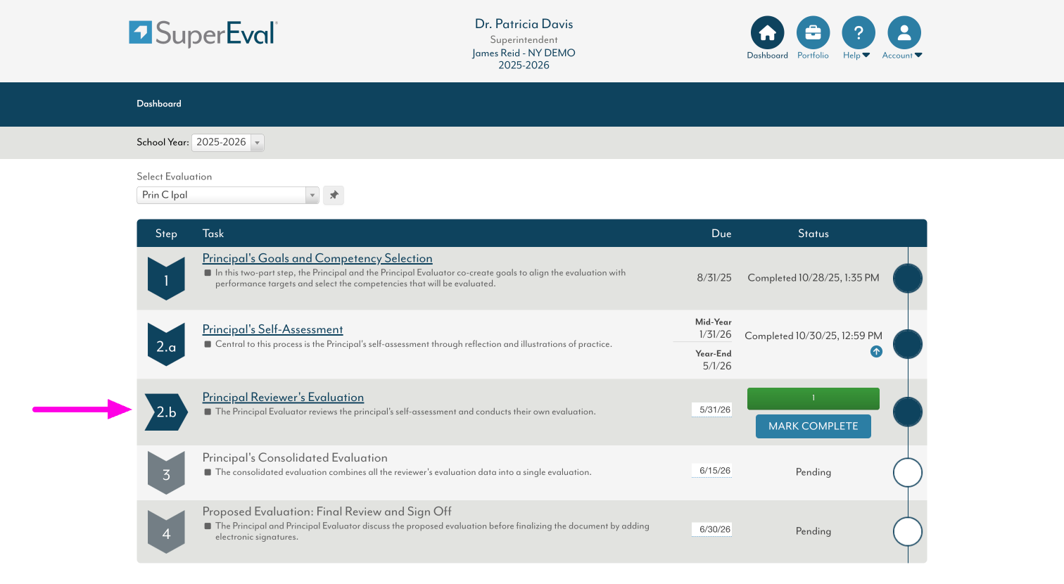 Evaluators will complete their feedback after the principal or staff member has marked their evaluation as In Progress.
