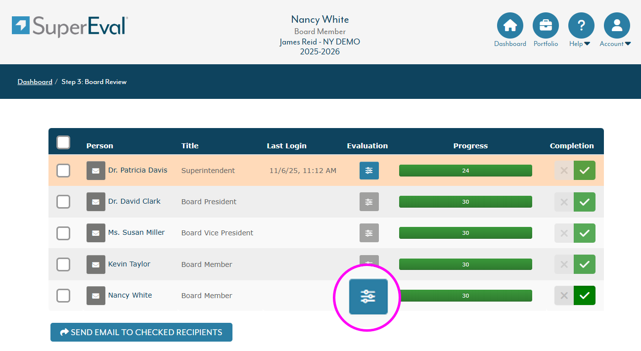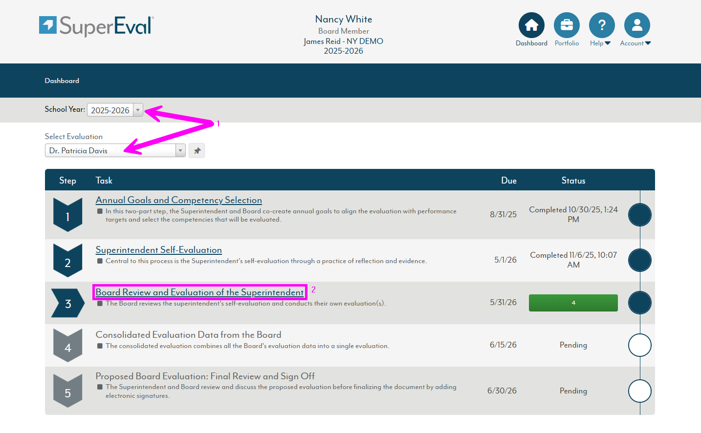 - Click on Step 3: Board Review and Evaluation of the Superintendent