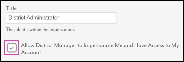 Check the box to Allow District Manager to Impersonate Me and Have Access to My Account