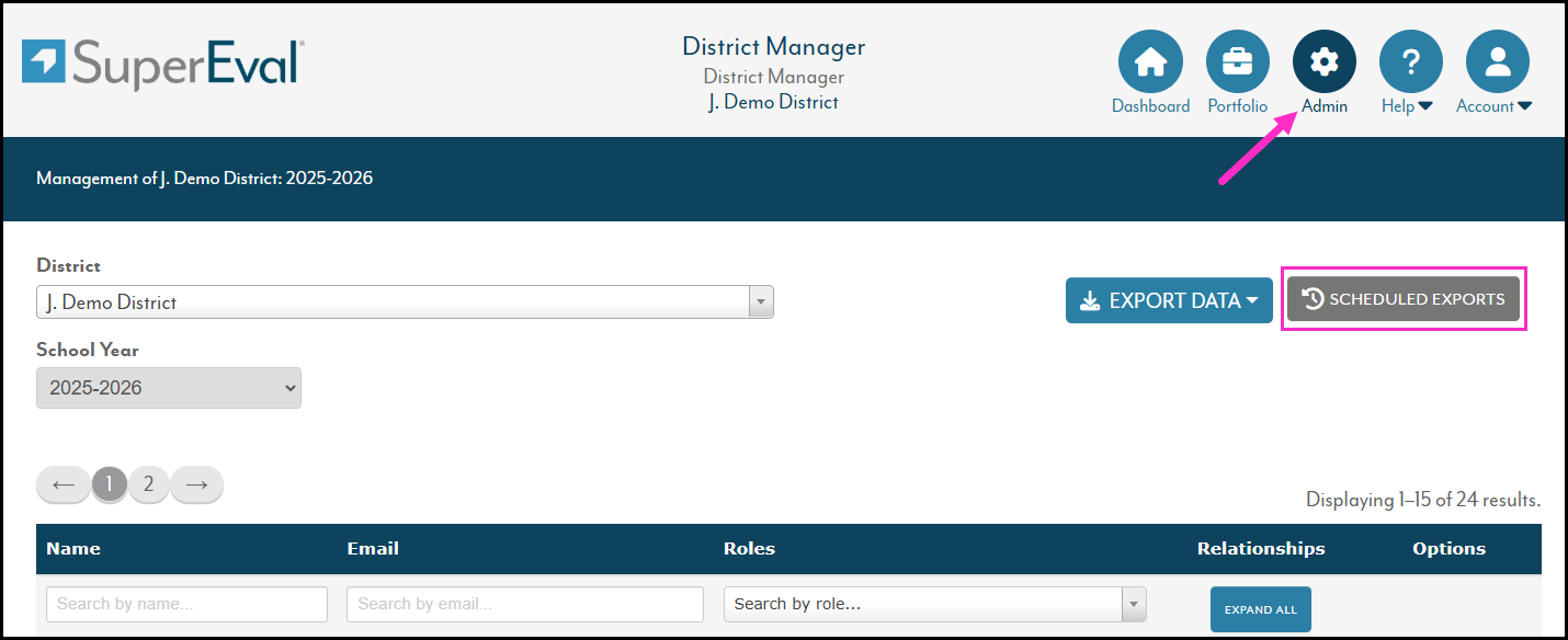 Once you receive the email notifying you that the export is complete, navigate to Scheduled Exports on the Admin page